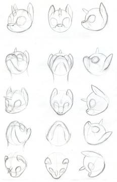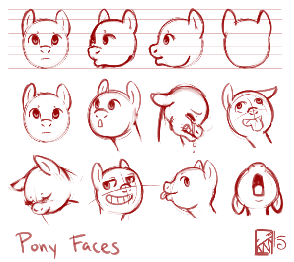 The pony head is damn close to a perfect circle. In some styles you'll see a little cheekbone in 3/4 or head-on, but the jaw will usually come directly from the lowest point on the circle. The muzzle is a little trickier, you just sort of have to keep trying until it feels right.