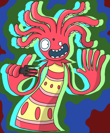 Drawlloween Day 4.Instead of the play on words, I went with the octopus hairdresser from the Hair Scare level of PaRappa the Rapper 2.