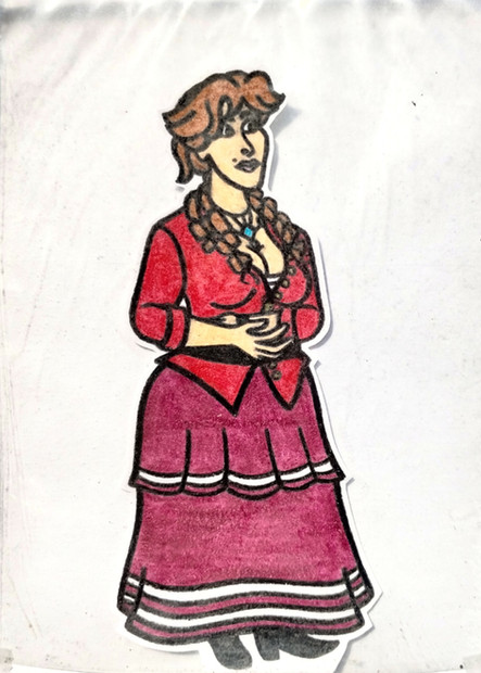 I was kind of experimenting with my colored pencils and I thought I'd see what happened if I used a bit of red on her elbow and shoulders.