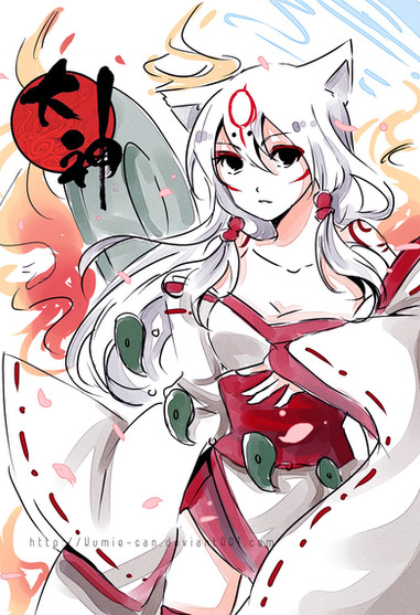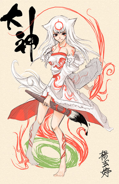 Amaterasu from Okami in human form.Blame my sister for playing Okami yesterday.
