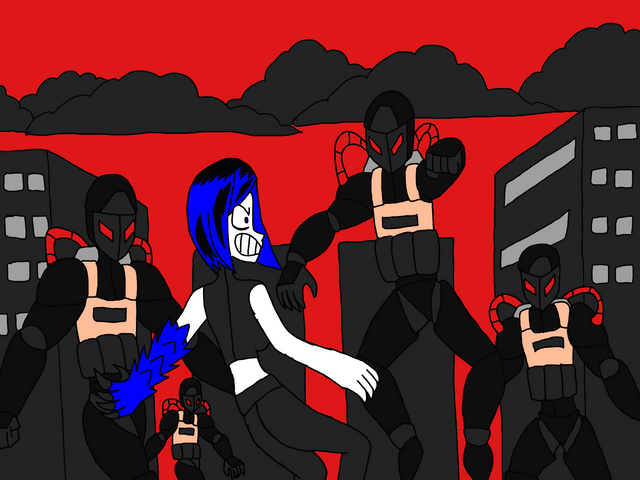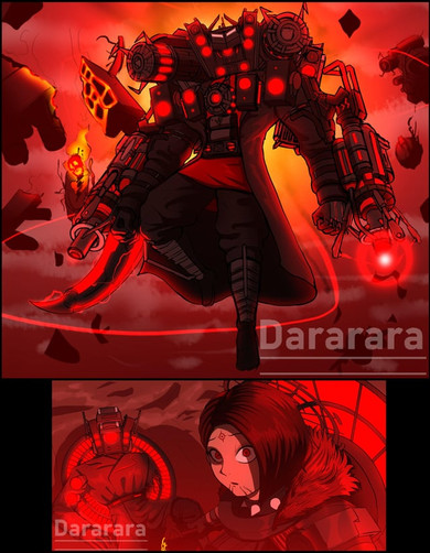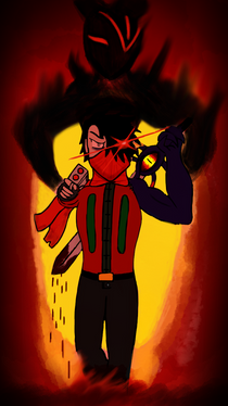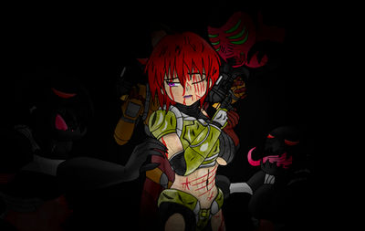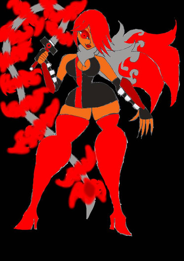 Reaver: {her gauntlet starts flashing & bleeping} Hm {twists the dial on it as her armor charges her with all the dark energy she absorbed} Hrrrrr! HAAAAAR! {bursts with flames as she goes berserk moving at high speed leaping onto another surface}