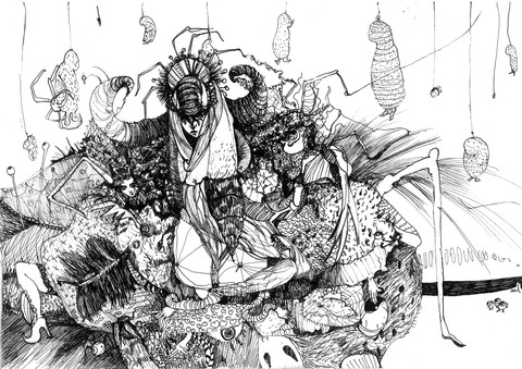 I think this is really amazing and full of expression. The sadness is depicted in a peaceful way though, which one does not expect from "forced" deaths. The lines are really thin and make me wonder how you did it. Or rather: which pen you used. You also have a wonderful and somehow "classic" style; I would for instance love to see this in one of those old illustrated books, as a scene depiction of a novel or something alike. I think you have a wonderful talent, my friend!