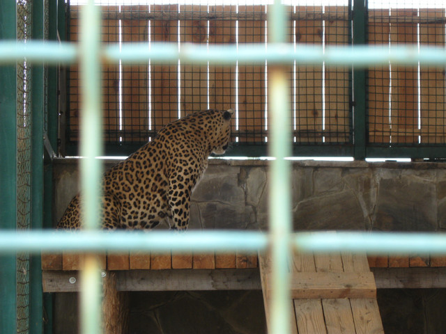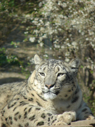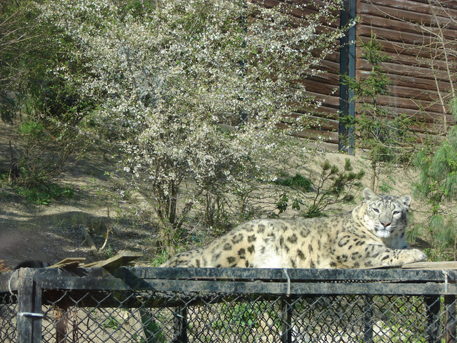 This Leopard (Panthera pardus) enjoys Spring and looking at vistors at local ZOO. I especially like those gren leaves behind him - it is like they were growing on his backSorry for late submission but I have busy morning