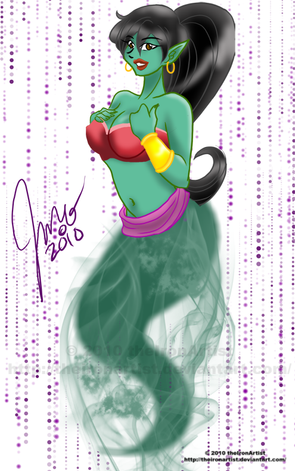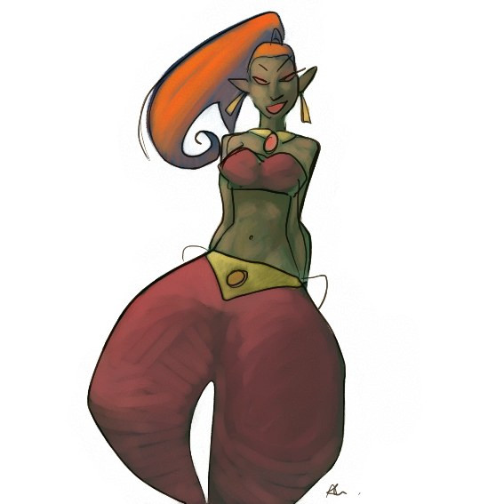 Level 2 commission for my friend, DigiPaw of her new OC, Ebonee, inspired by the Shantae games.