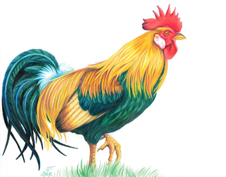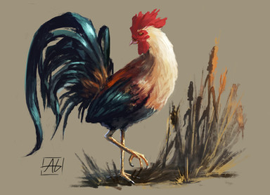 week 2 of 2018, rooster study. practicing feathers, vibrant colours, more detailed rendering for illustrations, and rooster anatomy - i missed week 1 unfortunately but what can ya doooopaint tool sai, ~4 hours