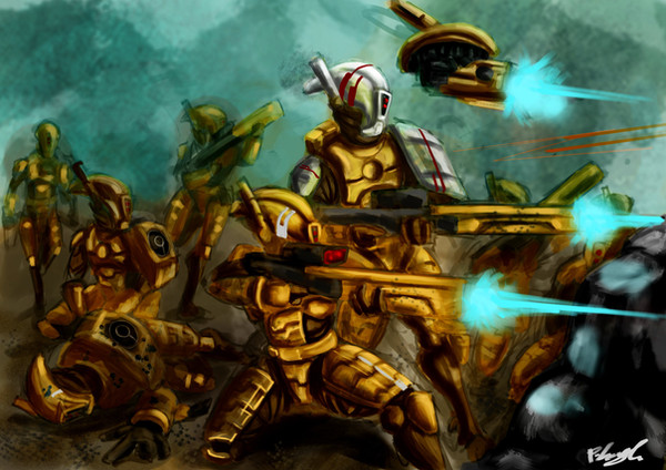 Yeah, the Eldar used to have the market cornered on cool guns, sweet tanks, and fantastic armor, but then along came those blue-skinned, no-nosed freaks, with their 30” S5 standard issue weapons, and their railguns and battlesuits. So I made them my fourth army. And Fire Warrior is fun, but a real bitch to beat X_X