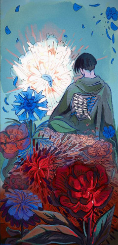 J'aime le fait que tu l'ai reprΓ©sentΓ© de dos, Γ§a lui va trΓ©s bien ! Γ§a donne envie de rester Γ ses cΓ΄tΓ©s ! ( En fait on dirait le point de vue de Levi XD) Les couleurs sont magnifiques, je me demande toujours comment tu fais pour savoir aussi bien les gΓ©rΓ©es ! Tu as la magie des aquarelles dans les mains !