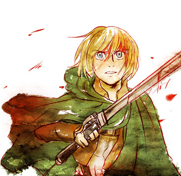 "Because green is the colour of hope"A quick little fanart of Erwin from Shingeki no Kyojin, done in watercolours in my watercolour moleskine. I had been wanting to draw Erwin for a while, unable to find a good idea, but suddenly this thing here happened. Well!