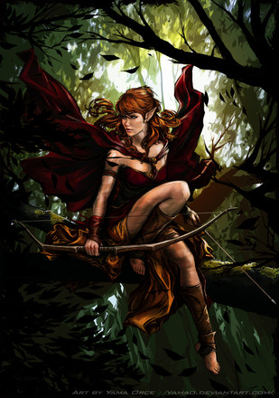 Ready and waiting for her pray, perched delicately on a tree with razor sharp mythril(?) arrow drawn, gorgeous work!