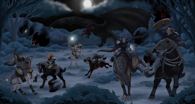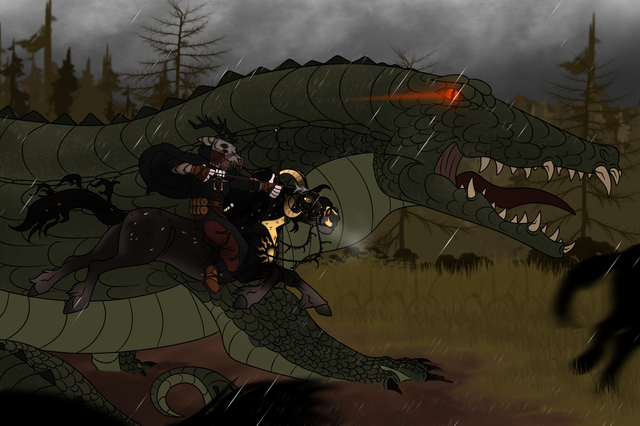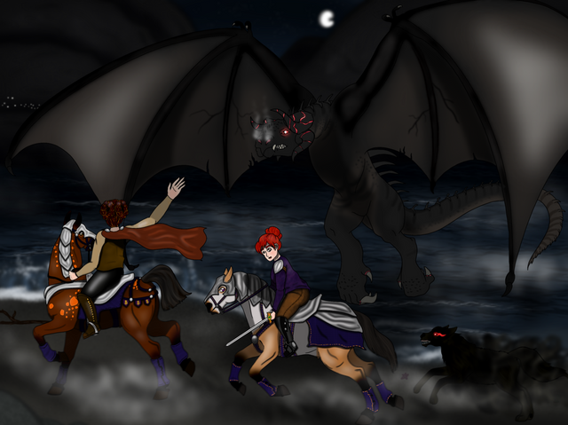 All of that did not really matter when she stood face to face with the ill tempered, almost pained looking dragon however. She felt as though her stomach was filled with ice when they heard the loud growl. Next to her Roar looked a hell lot of braver and in control than she was. To her great surprise, to her other side was the man from last year’s mud skirmish. Just the sight of him rewoked the awkward and uneasy feeling she had back then. Why did he look so condescending?! Under any other circumstanses she would have confronted him, but as the dragon rose to the sky, all three had their hands full handling the situation. Roar signaled that they should better get the fuck out of the dragon’s way until they had figured out a better strategy. As for now, the best thing they could do was kill off the shadow creatures surrounding the area and try draw the dragon’s attention away from the city.