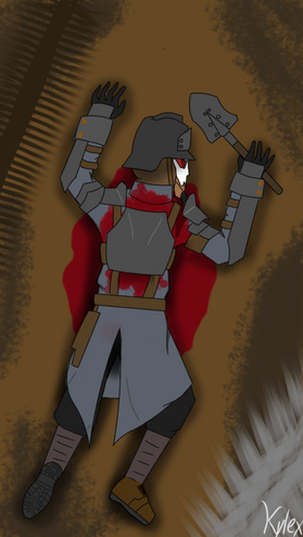 Just not all the details in the outfit but also like the background that feels very omnious
