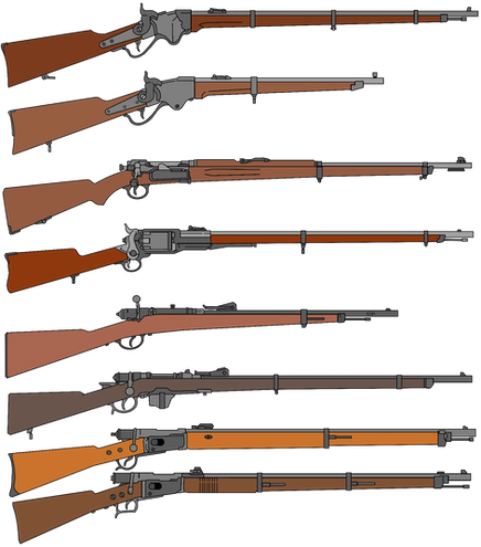 This is old west theme weapons for you, in this set we have 2 variations of Henry repeaters rifles and 3 of Winchester rifles. Iconic weapons used marshalls and cowboys in the time, important historic weapons of United States. This is illustrator file, so can be modified and feel free to use in your project, game or everytinhg else.