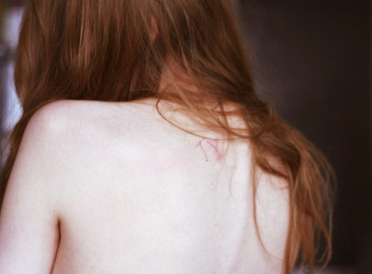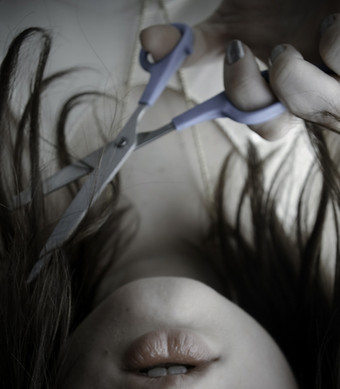 Trying to rid herself of the memories, bloody red hair to fall away to the floor.
