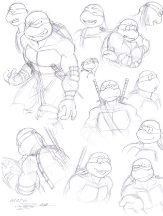 NINJA NINJA RAP!! honestly TMNT has been one of my most favourite if not the first set of characters I ever "tried" to draw. I remember opening up those first 4 Graphic novels and losing my mind... I would sit there all day trying to copy each of my favourite panels perfectly into a little sketchbook. Ah yes....good times..Anyways here are some sketches of everyone's favourite green ninjas.. Id like to do some more finished stuff of these guys soon...it's just too much damn fun!
