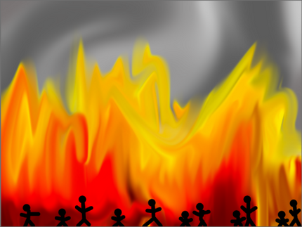 Awesome! The flames look great, and the shadowy figures look very sinister .