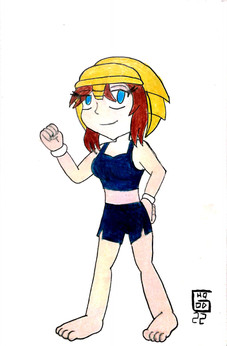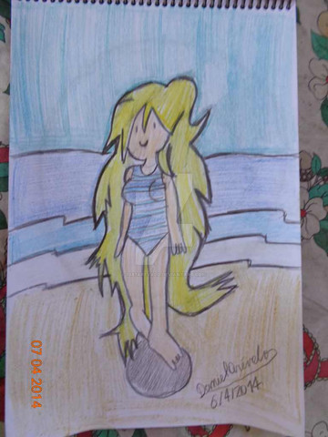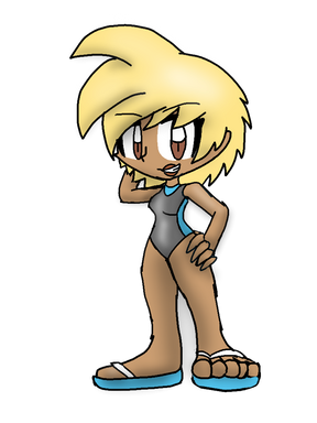 I finally got around to making a humanized Yellow Wisp. Since Yellow Wisps allow Sonic to travel both underground and underwater, I gave this gal a shovel, and a swimsuit (plus towel and goggles). I also made her hair shaped like a Yellow Wisp's head, though I couldn't really do anything about coloring the drill stripes for her hair, since I couldn't get it to work in Photoshop. That's why I didn't include them. But overall, I have to say that I really like this design.Art and design are mine.