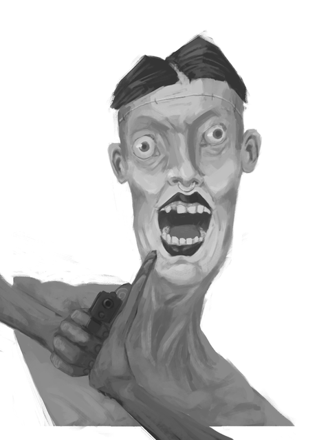 this coloring is soooo sick, i adore how you did the shadows and the green and pink together...sublime.. i love how hard his expression is (i dont know how else to describe it) also that bright bright yellow in the background just POPS so nicely. me wig disappear