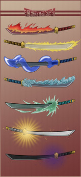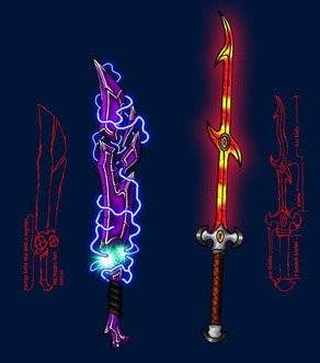 Nice. I dd something like this once, only not as cool and not in color. My two favorite swords are the 3rd and 4th from the left. The fifth from the left reminds me of Tron...not sure why. The final swords are cool, though a little basic compared to the others. Great work overall.