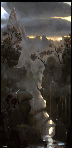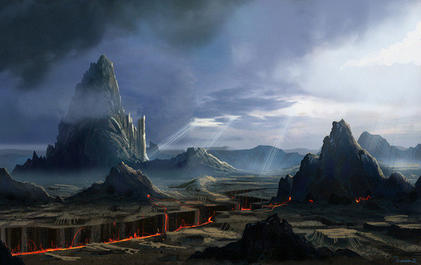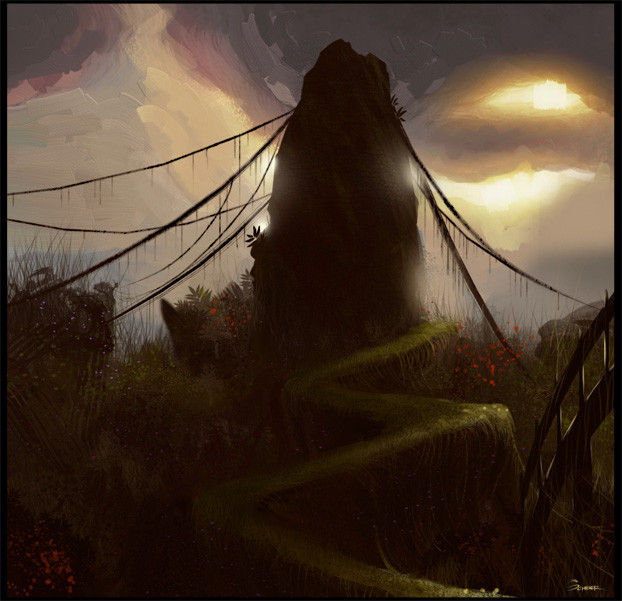 This city uses lightning and electric currents to power its main core. The planets conditions consist of constant electrical storms, and weather disruption. These massive leaf-like lighting rods barrel the energy into the many fibers of this cityscape. People on this planet must wear rubber suits that resist the heavy currents and strong storms. In this concept, I wanted to depict Taranis as it is in its ever changing chaos.."In Celtic mythology Taranis was the god of thunder worshipped in Gaul and Britain"