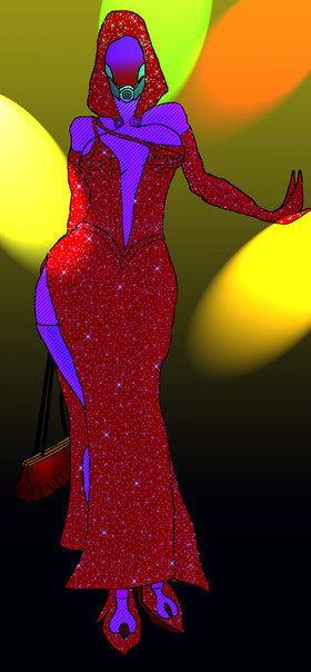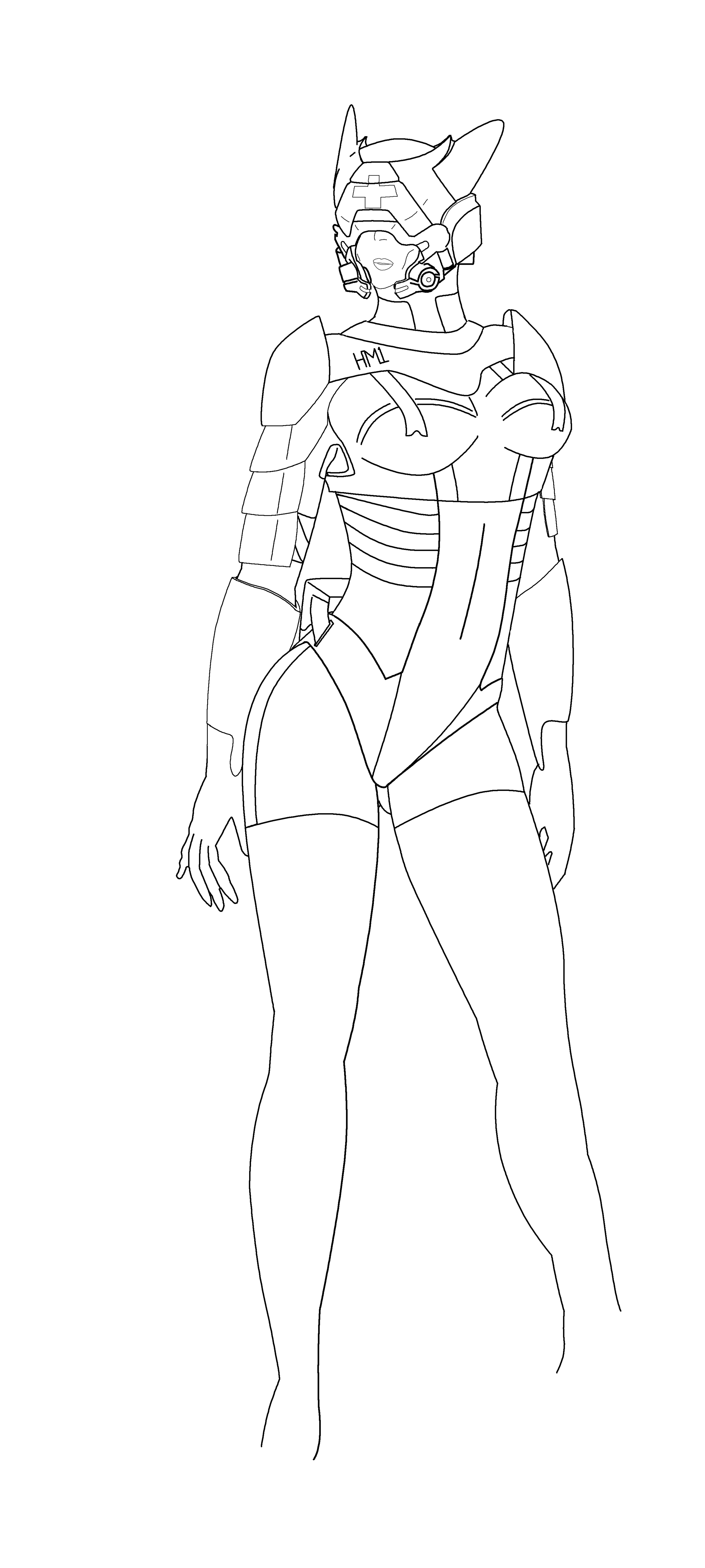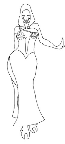 - Changed her hair style atop her head to support the notion of long flowing hair... (Initially removed the line denoting the back of the head, and made the hair flow extend out from her temples, but her bee stung ear was a problem that the face guard of her original crown covered up, removing the problem). And added a few more lines to denote where her hair was falling out to the sides and behind her back.