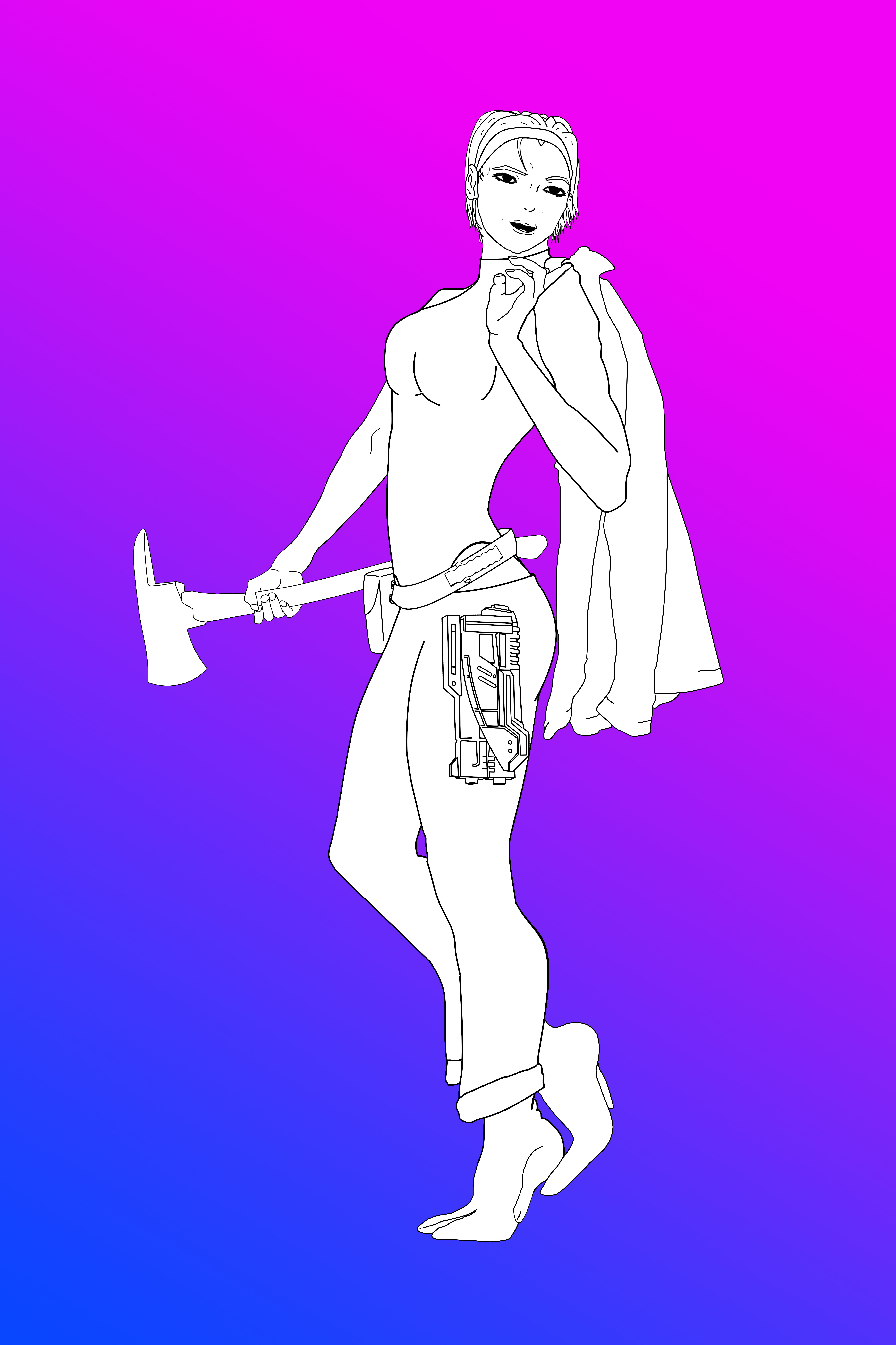 - Rounding off the line art of her neck and shoulders so they are less angular.