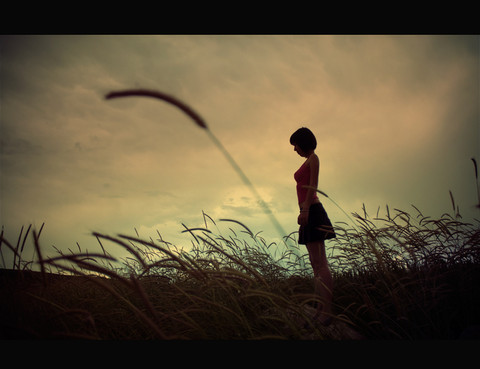 i love love love the composition of colors in this picture the afternoon sky + the feel that the sun is setting behind the girl's back is so peaceful. ^^ featured if you don't mind.. [link]