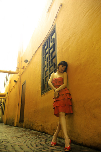 I like it. Whole picture. Colors of the sky are just amaizing, and the choice of girl's dress is good. Also I like her expression - she seemed to be so shy and unsure what to do next. Good job!
