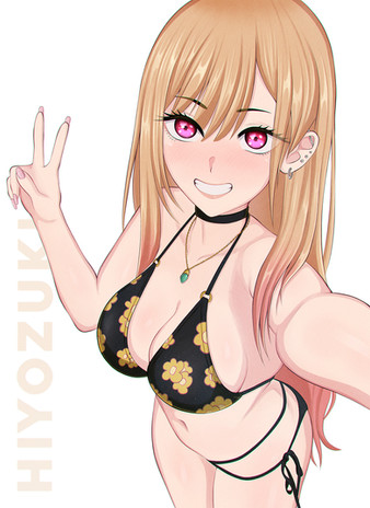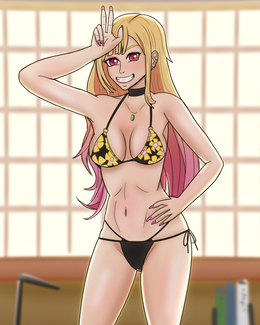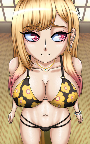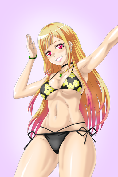 #anime #bikini #drawing #girl #otaku #redeyes #tv #yellow #bikinigirl #bikiniswimsuit #swuimsuit #marin_kitagawa #kitagawa_marin