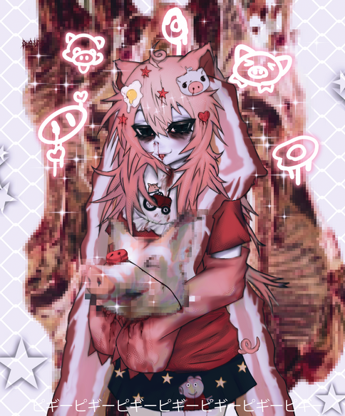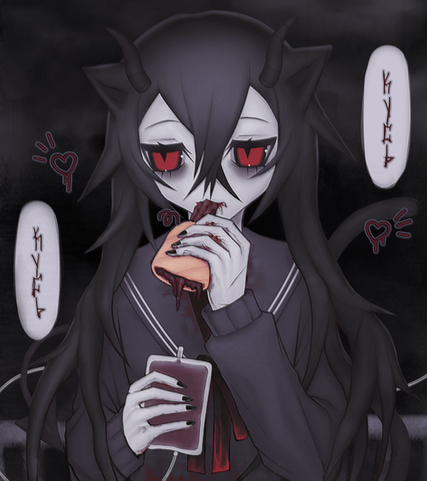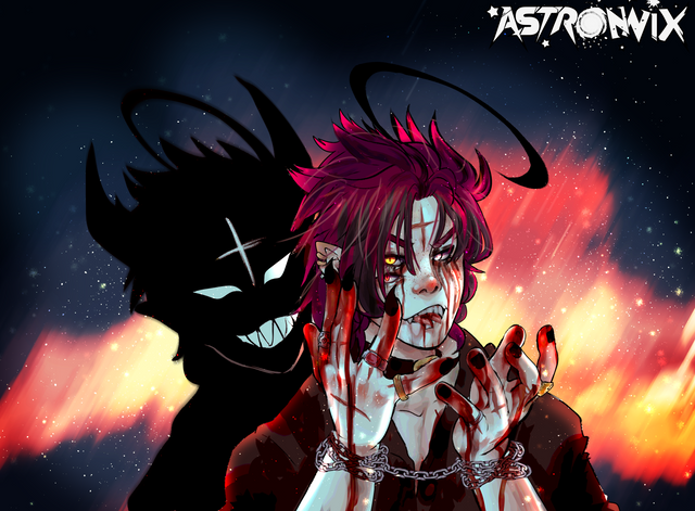 #animemanga #blood #boy #cute #dark #horror #kawaii #monster #pink #red #skeleton #tooth #monsterboy #animeandm #digitalpainting #fanartdigital #ribs