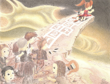 Actuallly no, even now it doesn't. And back then, the daunting scale of the task was so immense that it in part contributed to early procrastination and sluggish starts. That might seem unconscionable to those who preform tasks similar to these often or those who've known the kinds of things I've done in the past, the feelings of trepidation were thanks to the fact that the piece had to be drawn on a 24"x19" (61x48 cm) sheet of paper. This thing is MASSIVE compared to everything else I've done. In fact, it's literally my biggest project since 'Where's Yo' Head At?' But what the latter had over this is that I could complete it in my own time at my own leisure. This had a deadline, and my ungodly slow work pace doesn't mean I do well with deadlines. (I have an unofficial tradition of never being able to turn in a school art project completed on time.) This was no exception. And considering my life was still dictated by perfectionism and self loathing, the perpetual sense of failed idealism didn't bode well for me. Furthermore, despite investing approximately 50 hours into this; time that included many nights of staying at the college until ten at night and the two over-nighters I invested into getting it done, Vanity reared his ominous husk once more, and I again failed to meet the deadline. (Keeping the tradition alive!) Albeit the only thing I hadn't finished was the dragon statue, but the failure still weighs upon me to this day.