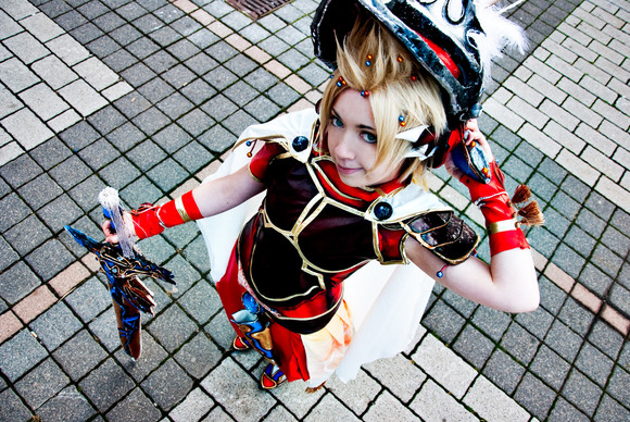 The details on the costume and the weaponry are astounishing; that in combination with a beautiful high-def deep color-toned picture makes it candy for the eye. I liked this picture in particular as it shows the beaded tassel on the sword in more detail, which has more of a fantasy like vibe on your picture than on the concept art.