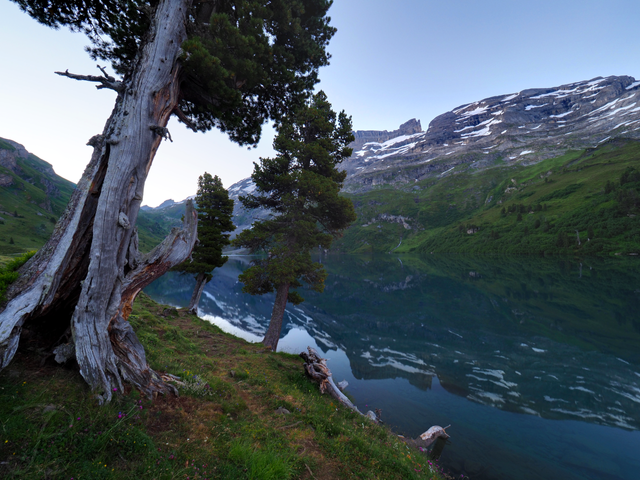 During our last annual trip to the Alps, my friend NicolasAlexanderOtto and I drove to a lake in the Swiss Alps we scouted earlier on GoogleEarth and were surprised how beautiful it really was. On the lake shore there were cosy benches and fireplaces with firewood next to them. It was simply too inviting to not spend a night by the campfire.