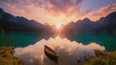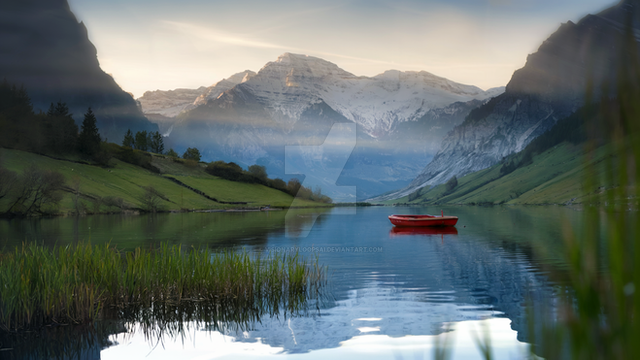 #alps #boats #jetty #lake #mountain #mountains #mountainscape #sunrise #swissalps #switzerland #water