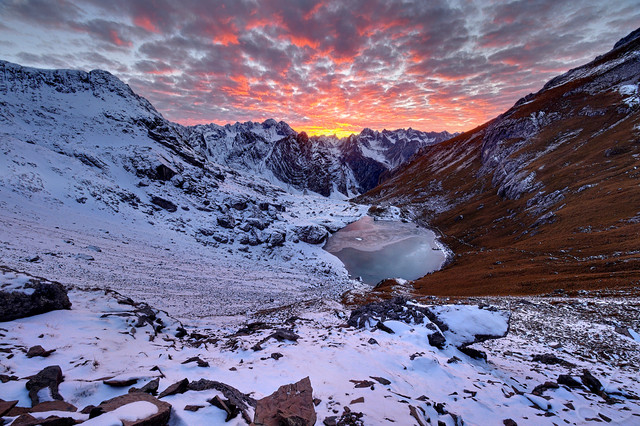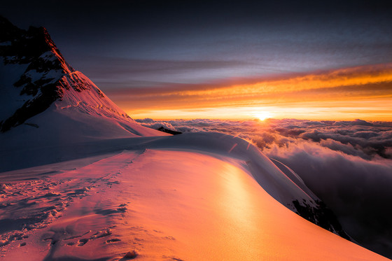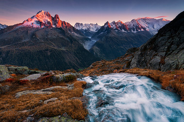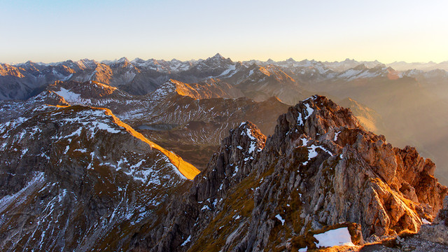 We had some golden autumn days in Germany last week. I tried to make the best out of it and went hiking in the Allgäu mountains for two days. It was incredible warm for the time of the year, slightly above 2000m altitude the temperature was between 6 and 8°C all night long. I had colder nights in the Alps in August already.The mountain on the right which catches the first sunlight of the day is called Rauhhorn.