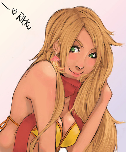 it looks like Yuna from Final Fantasy kinda with the hair..just wanted to say that xP;