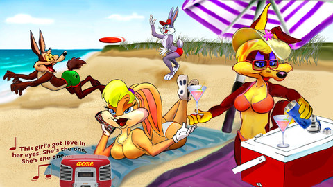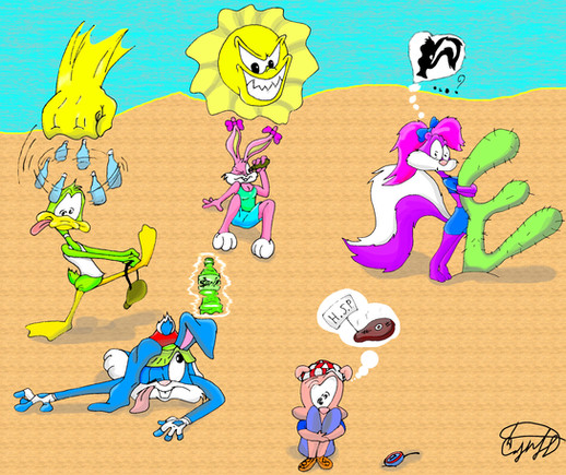"lookout daffy!! The ball's heading for your-" *the ball smacks the duck's head as it pile drives him into the sand* i was too late T_T