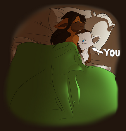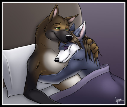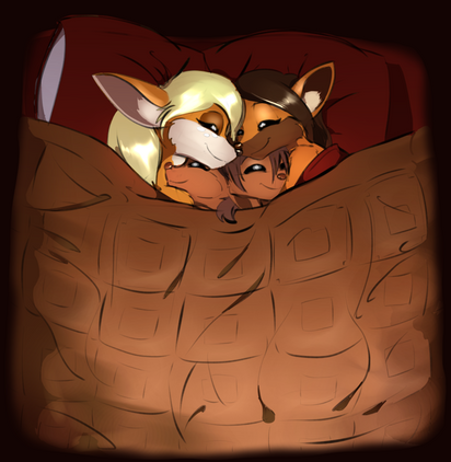 Mia, from my webcomic VHV , resting in bed on a cold winter's morning while her daughter Emmi burrows her head into her mother's fur.Seeing this picture online inspired me to do something very light and fluffy. :3