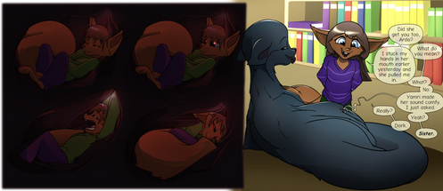 #anthro #burrowed #comic #cuddle #emmi #fluff #fox #fur #furry #mia #nap #sleep #snooze #squirrel #vhv #webcomic #daaberlicious