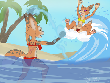 #anthro #cassandra #cat #fox #furry #ocean #splash #summer #swimsuit #veronica #water #psicoyote