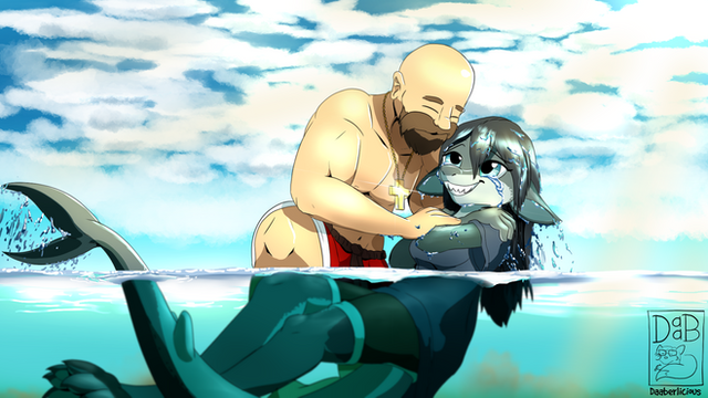 As A last hurrah to Summer of 2022, I drew Psicoyote's Veronica and Cassandra splashing around in the ocean!