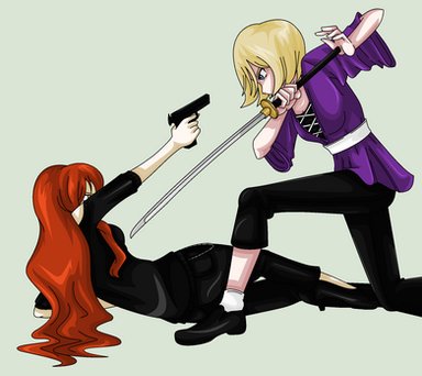 So Lena and her rival Cathelin fighting. Yeah, I love drawing fighting scenes.