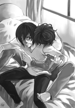 Hah! This should so happen! Or at least I could see it happen in Raito's last resorts... XD Is Raito wearing pants? Seriously? If he is, they're rather smooth and don't have creases. ^.~