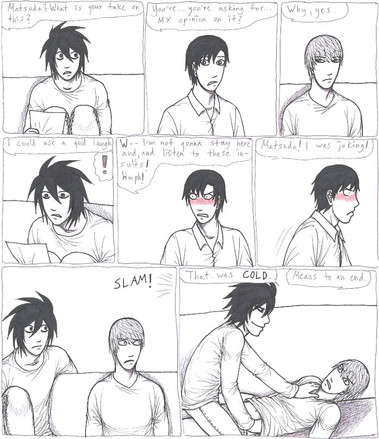 yeah, I probably should've put like side lines on Raito's pants. since, to me, it looks like the first one to lose his pants in this situation will be L