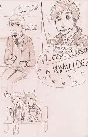 I did this a long time ago on my tumblr as a sketch request but I edited it on the computer so it had color and was readable.I love how it takes me forever to come back with Sherlock stuff on DA and what do I do? Stab you with Reichenbach feels