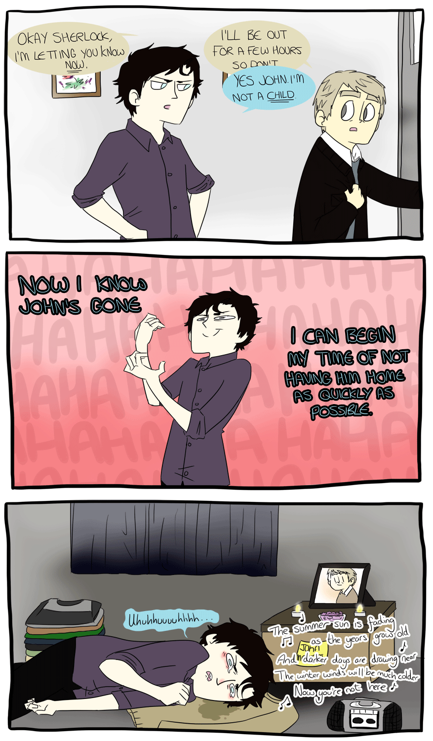 There's suppose to be another reichenbach comic between this one and "I didn't want to leave you" but that will come in time and when I can actually think of whats going to happen