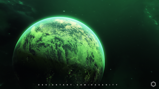 I was looking for a title and the green color made me think of some biological reaction going on on the planet.Β
