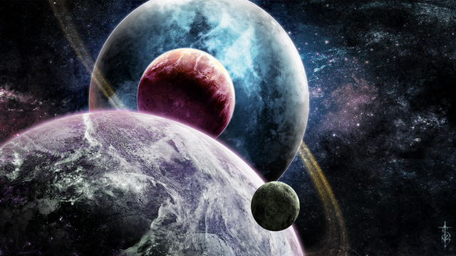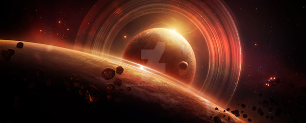 Wow. Very, very nice, man! I love the colors and your planet style. The nebula looks a bit flat to me, could use some more work. The rest is excellent