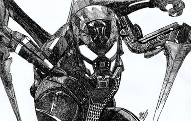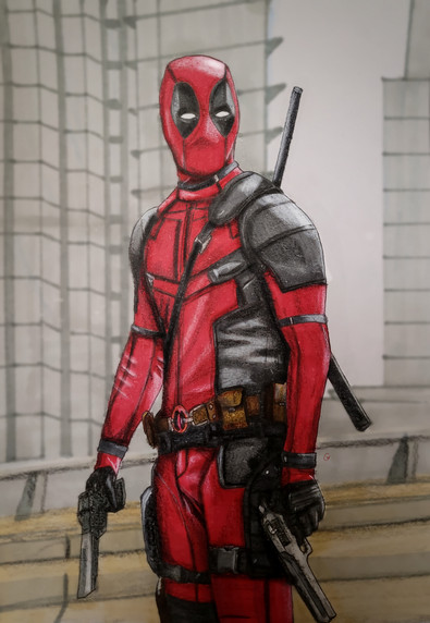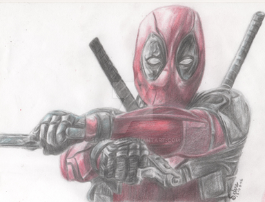 Ryan Reynold's Deadpool!This time I tried with colouring pencils instead of red ink and I'm really surprised with result cause I don't really like colouring pencils and every other coloured art was fail.Still, some of the black parts are with ink.