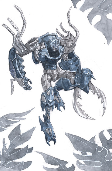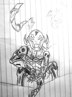 This giant robot-killer took me incredible amount of time and nerves,in few moments I actually gave up cause it seemed to be impossible to finish him,but finally after an age damn thing is finished.Done with pencil and ink