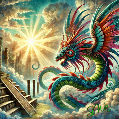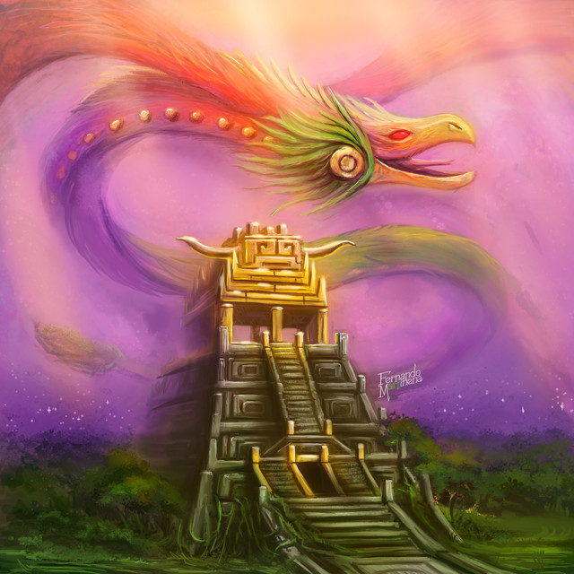 #mythology #ancient #god #digitalart #magic #fantasyart #digitalpainting #surreal #spirit #spiritual #fanart #dragon #forest #moon #serpent #sky #stars #sun #temple #wallart #wallpaper #ziggurat #aztecmythology
